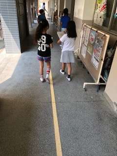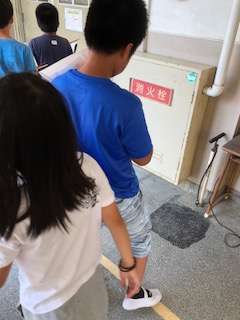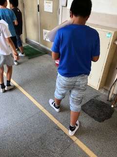 4年生が大隅西小学校の中にある消火器などを調べています。