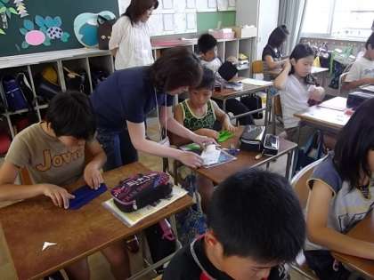 今日は5年生1組に7名もの裁縫の達人がきていただきました。