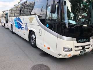 5年生が林間学習に出発しました。2台のバスに分乗します。早朝からのお見送りありがとうございました。