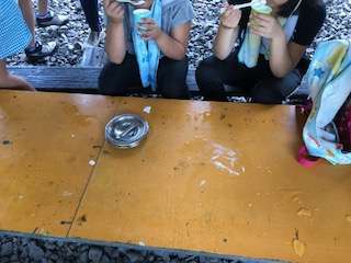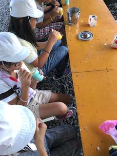 おいしいアイスクリームを楽しみながら味わって食べています。