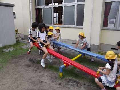 本日は、本校へ1年生〜4年生までの児童10名程が来校していただきました。シーソーやジャングルジム、フルーツバスケットなどのゲームをして遊びました。また、音楽の授業を一緒に参観したり、図書室で一緒に本を読んだりしました。