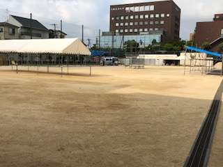 明日の大隅西地域夏まつりの準備が進んでいます。明日の夕方5時から夜9時まで行われます。