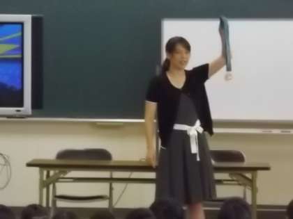 本日、「夢・授業」という事業でシドニーオリンピック背泳銅メダリストの中尾美樹さんが来校されました。2時限目は多目的室でオリンピックの話やビデオを見せていただきました。銅メダルを実際見せていただいたときは、子どもたちから「すごい、本物や」という声があがりました。