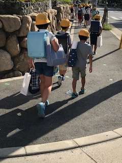 2学期が始まりました。手に持っている紙ぶくろには夏休みの宿題が入っていることでしょう。