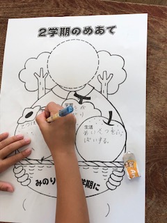 教室では、夏休みに宿題の答え合わせをしたり、2学期のめあてを書いたりしました。