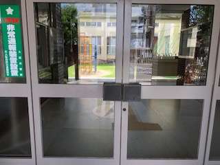 管理作業員の方が玄関の扉の塗装を塗り直しました。