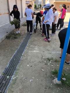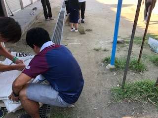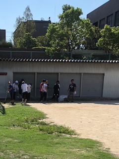 台風で運動会関係の倉庫の中にも水が入りました。児童下校後に教職員で整理整頓と清掃を行いました。