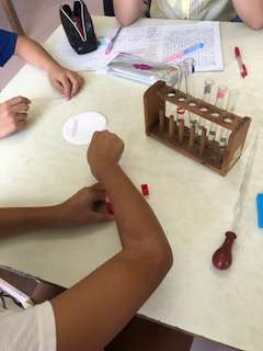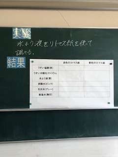 6年からが理科で酸性とアルカリ性についてリトマス紙を使って実験をしました。
