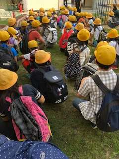 5年生が社会見学で自動車を作るダイハツ工業に行きます。出発前の様子です。