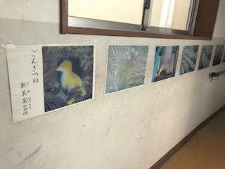 4年生の国語で学習するごんぎつねや作者の新美南吉の本を教室の横に展示しています。壁には写真も貼っています。