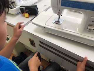 5年生が金曜日の家庭科の授業でミシンを使いました。