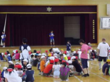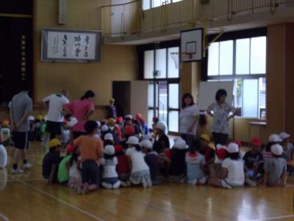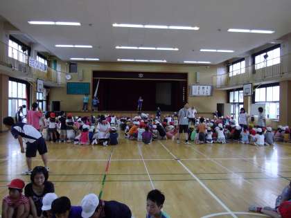 縦割り班に分かれて、大隅西小学校に関するクイズをしました