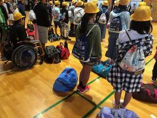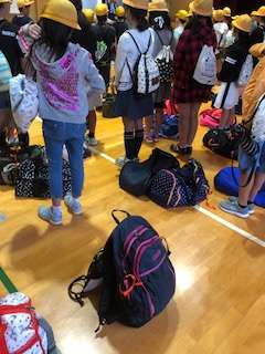 雨のため、出発式を講堂で行いました。早朝からのお見送りありがとうこざいました。