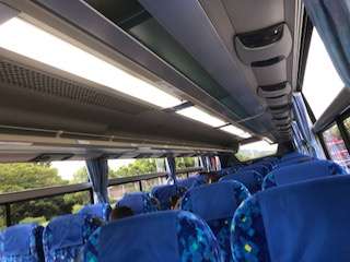 バスの中では歌声が弾んでいます。CDも歌集もあって準備万端です。
