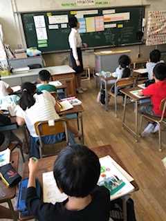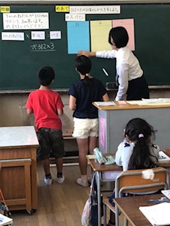 大隅西小学校出身の教育実習生が3年生の算数の授業を行いました。