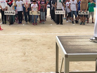 晴天のもと、大隅西小学校において大隅西地域体育大会が開催されました。小学生もたくさん参加しています。