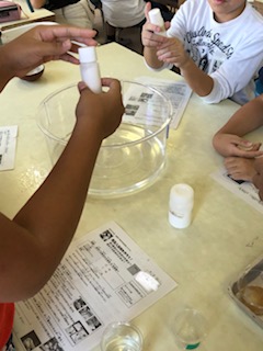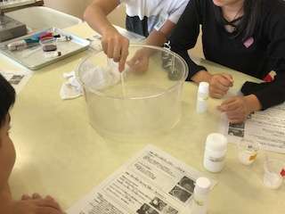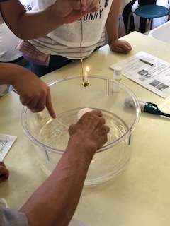 二酸化炭素を発生させてろうそくの火がどうなるかを実験しています。