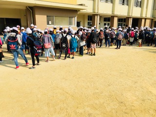 出発の前に全校児童にルール説明などを代表委員が行いました。