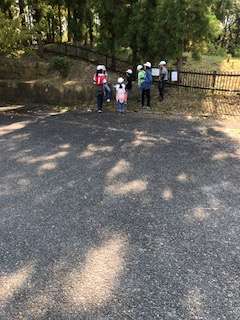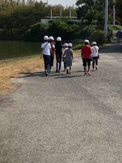 鶴見緑地公園内をたてわり班ごとに歩きます。