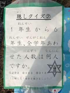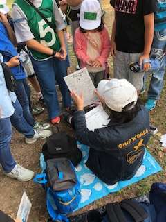 集合して時間や点数を確認しています。どの班もリーダー中心によくまとまり、迷子もけがもなく戻ってきました。
