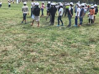午後からは学年ごとに活動します。5、6年生は長縄をしています。