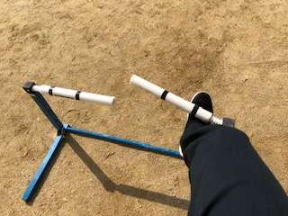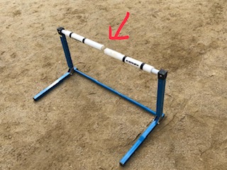 ハードル走で使っているハードルは、バーが真ん中で分かれているタイプの物です。