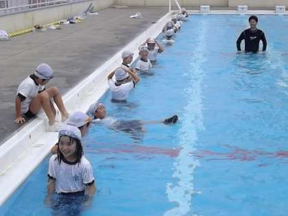 本日、1学期の水泳学習の締めくくりとして、3年生が着衣泳をしました。3年生の児童は、初めての着衣泳でした。服を着て水の中に入ったら体が自由に動かないことを体験し、ペットボトルやボールなどを使って助けが来るまで浮く練習などをしました。