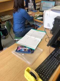 今日は天気が良くて図書館に来る児童は少なかったのですが地域の方が貸し借りの手続きをしてくださっています。