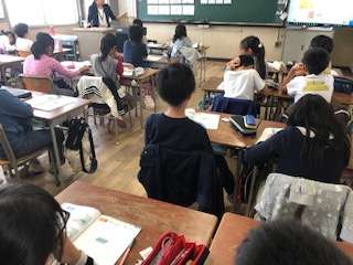 4年生の外国語活動です。英語の文を繰り返して学習しました。