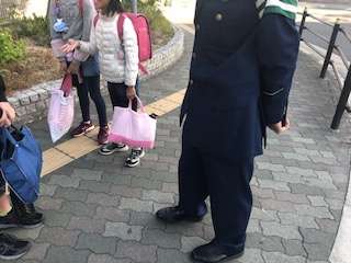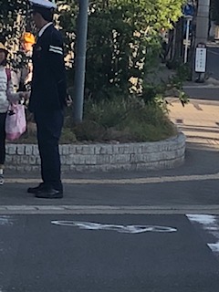 5日の朝の登校時間に信号のところに東淀川警察の警察官が立って安全を見守ってくださいました。