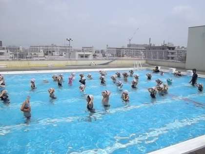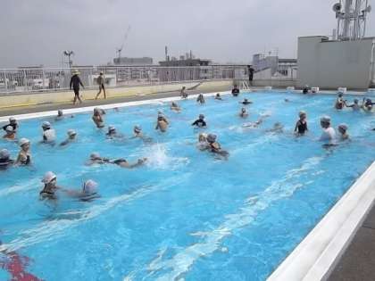 今日から、プール開放が始まりました。気持ちよさそうに入っていました。