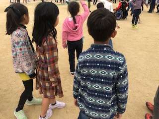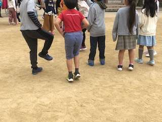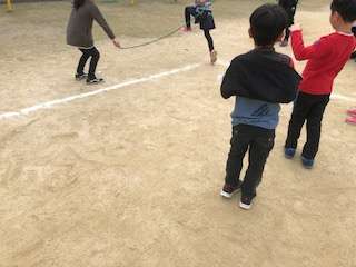 長なわを使ってクラスでなわとびをがんばっています。