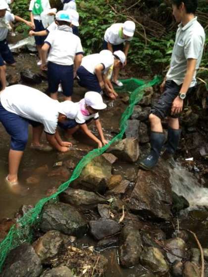 魚つかみをしました。初めて素手で生きている魚をつかんだ子どももたくさんいました。