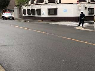 週始めの今日、警察官の方が横断歩道に立ってくださいました。