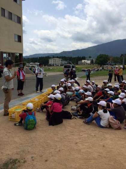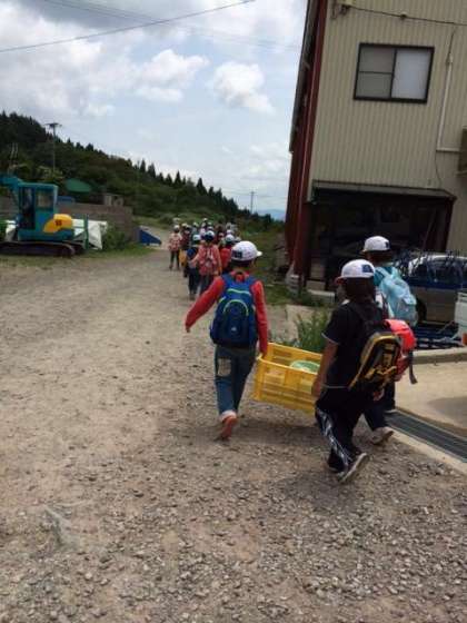 野外炊飯の準備をしています。宿舎の人の話をよく聞いておいしいカレーをつくろう!