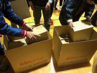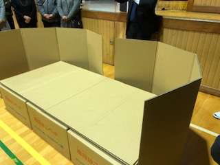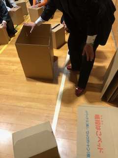 講演の後に、実際に段ボールベッドを組み立てました。