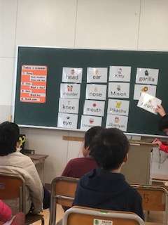 外国語活動の授業を教員も見て研究を図っています。