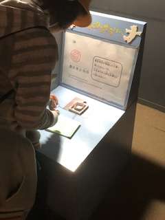 スタンプラリーのスタンプを押しています。