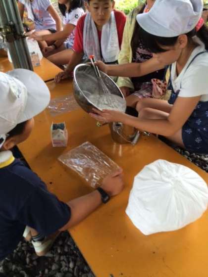 よく混ぜて!こぼさないように!砂糖も入れて!