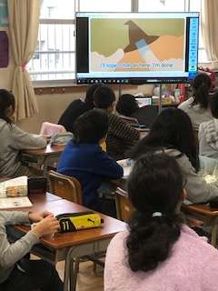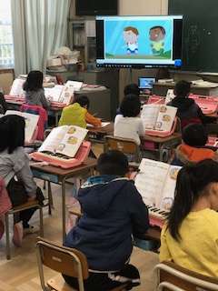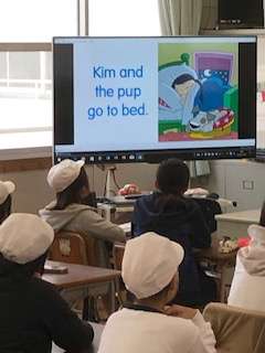 朝の英語タイムです。1時間目の学習の用意をしておいてから英語の学習をしています。