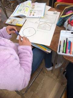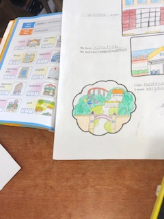 外国語活動では、英語の文を書いたり、読んだりする活動を行っています。
