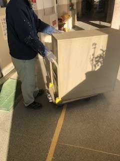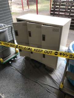 管理作業員が、校内美化として校長室前の靴箱の塗装を行いました、