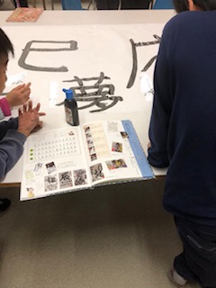 クラブ紹介のカードや墨でのデザイン画を仕上げています