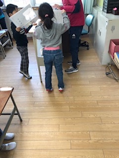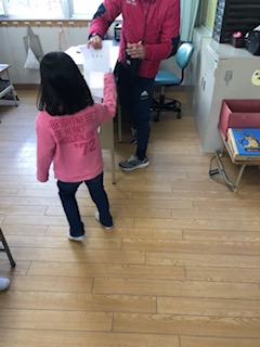 ご家庭でご覧いただいたあゆみ(通知票)を子どもたちが担任に渡しています。