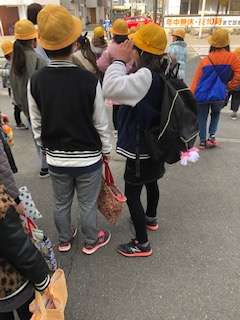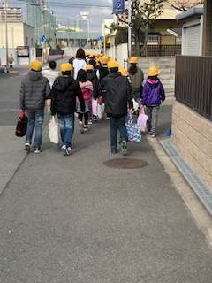 登校班ごとに集団下校しています。