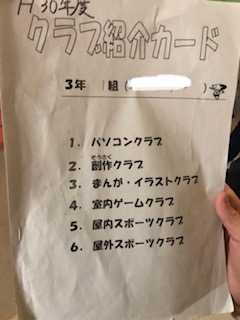 クラブ見学ではこのようなクラブ紹介カードを見ながら進めています。