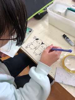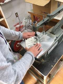 テープカッターを作っています。電動のこぎりも使って自分の思いを作品に込めています。