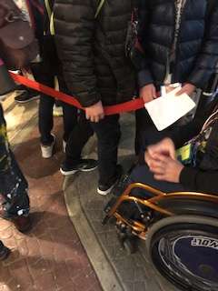 館内に入っていよいよ活動の開始です。すし体験コーナーに並んでいます。