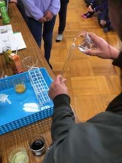 6年生がお薬講座を受けました。学校薬剤師の方に薬の正しい飲み方やたばこの害、禁止薬物などについて教えていただきました。実験もしました。
