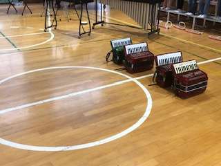 学習参観に向けて講堂で練習や準備が進んでいます。